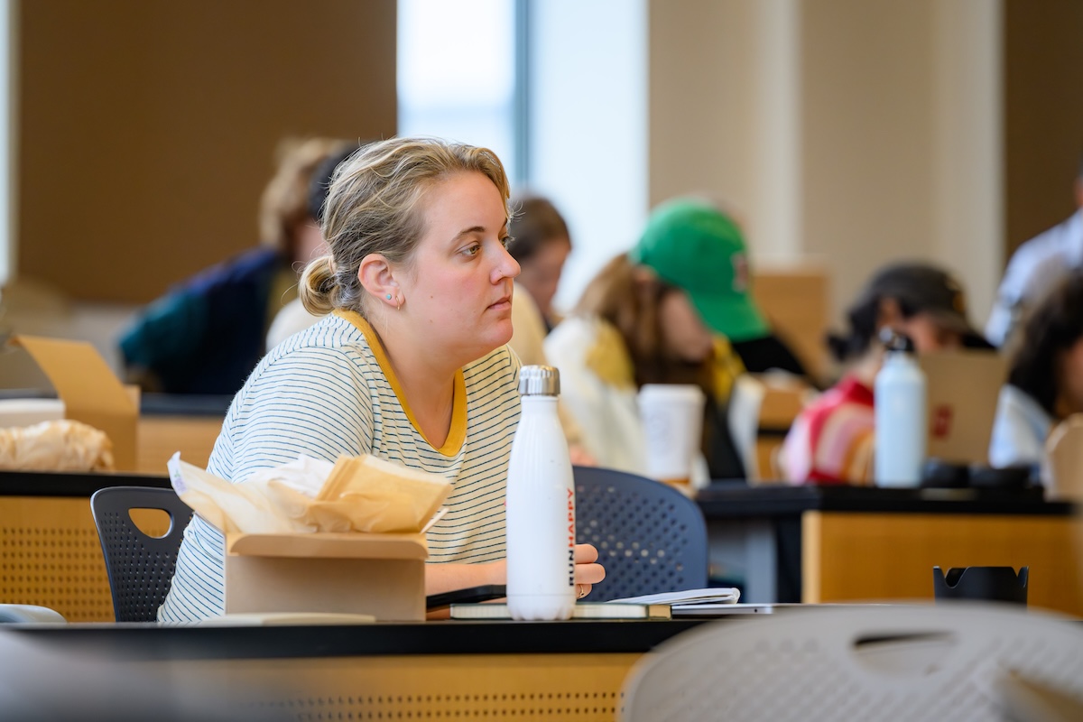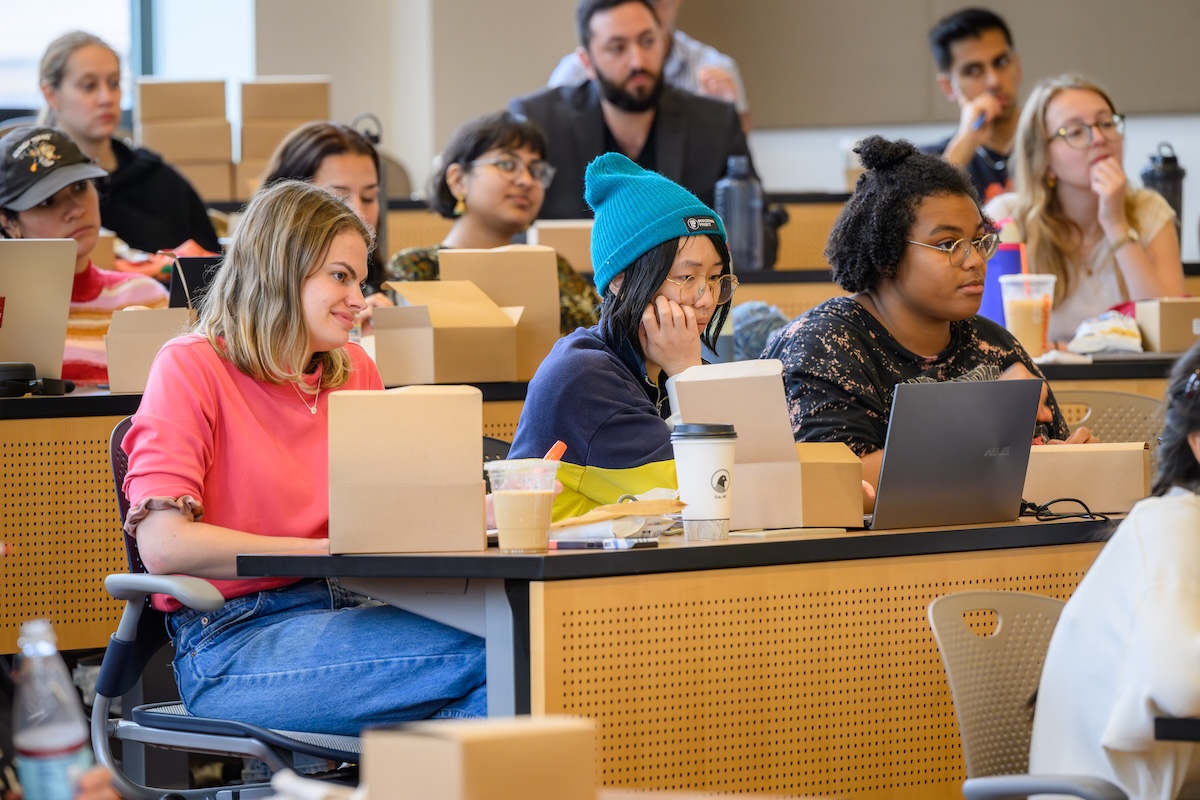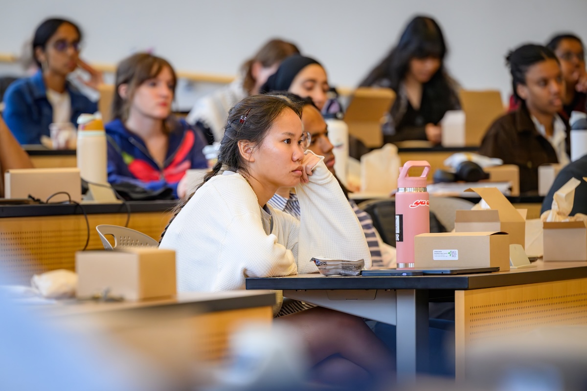 Elizabeth Yeampierre ’83, co-chair of the Climate Justice Alliance and executive director of UPROSE, Brooklyn’s oldest Latino community-based organization, spoke at Northeastern Law in October as the fall 2025 Daynard Public Interest Law Fellow.